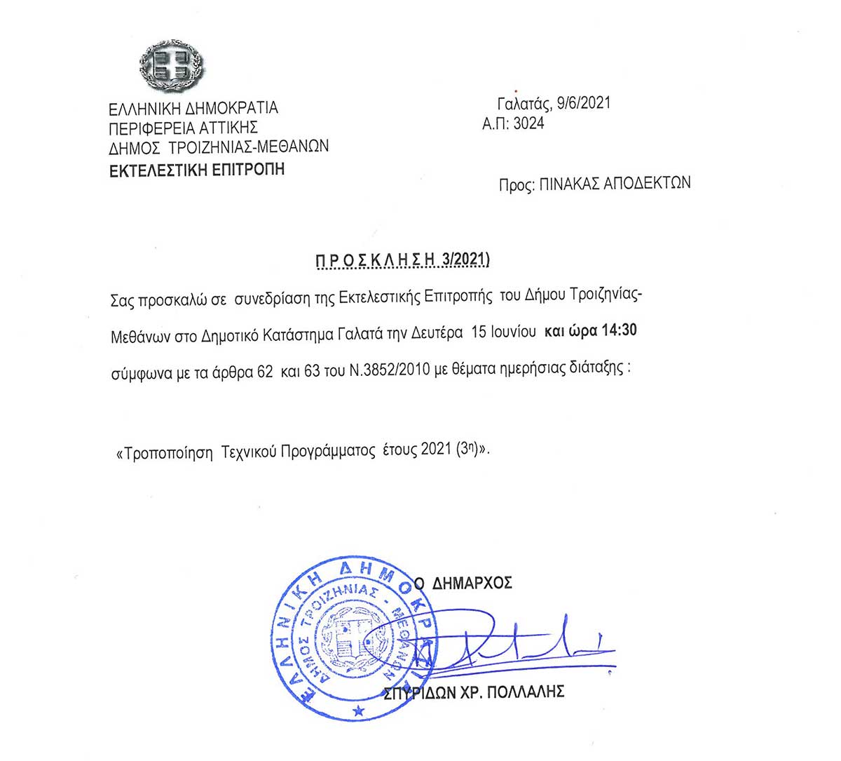 Προσκλήσεις Εκτελεστικής Επιτροπής