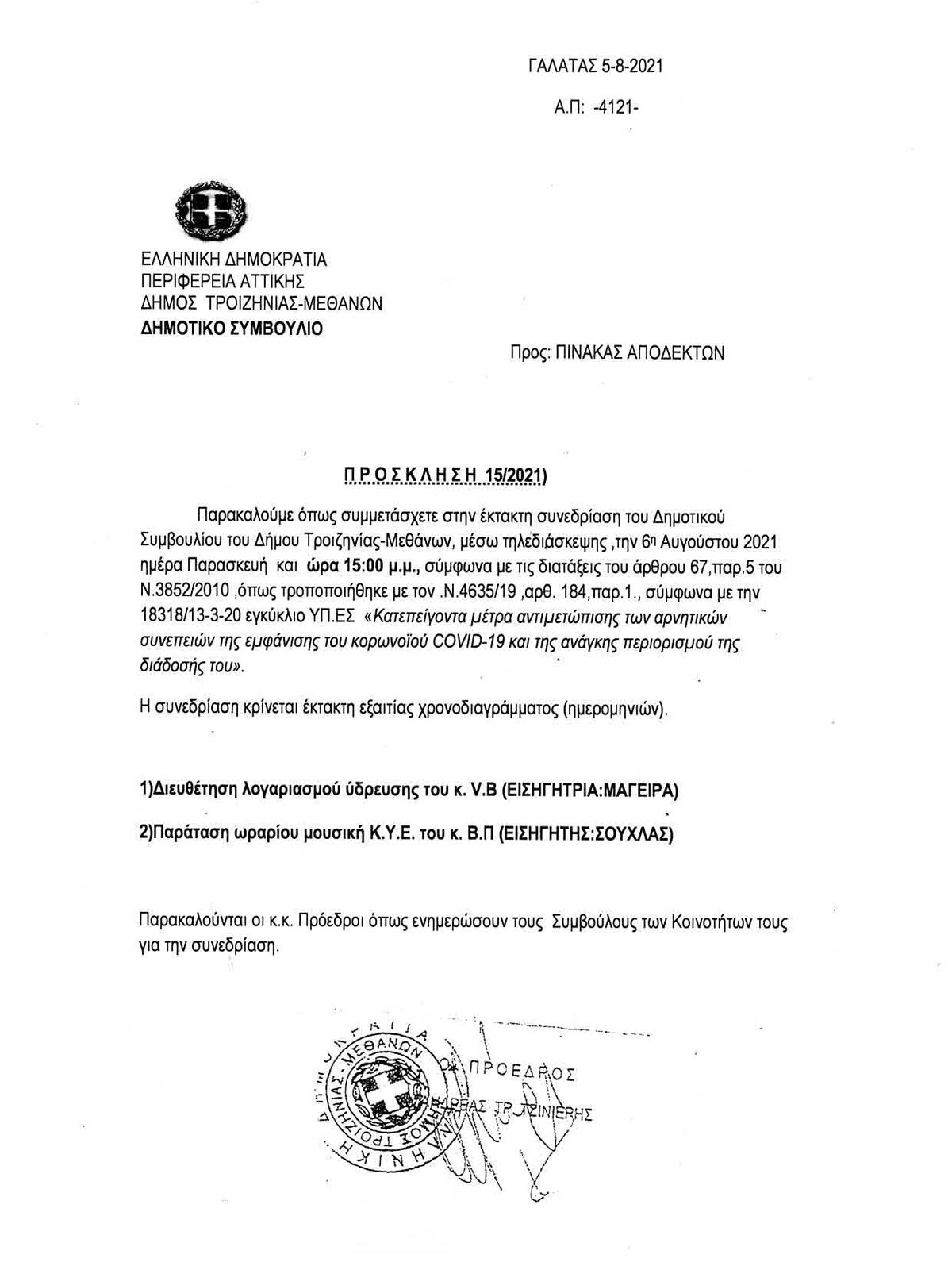 15η Έκτακτη Συνεδρίαση, Παρασκευή 6 Αυγούστου 2021
