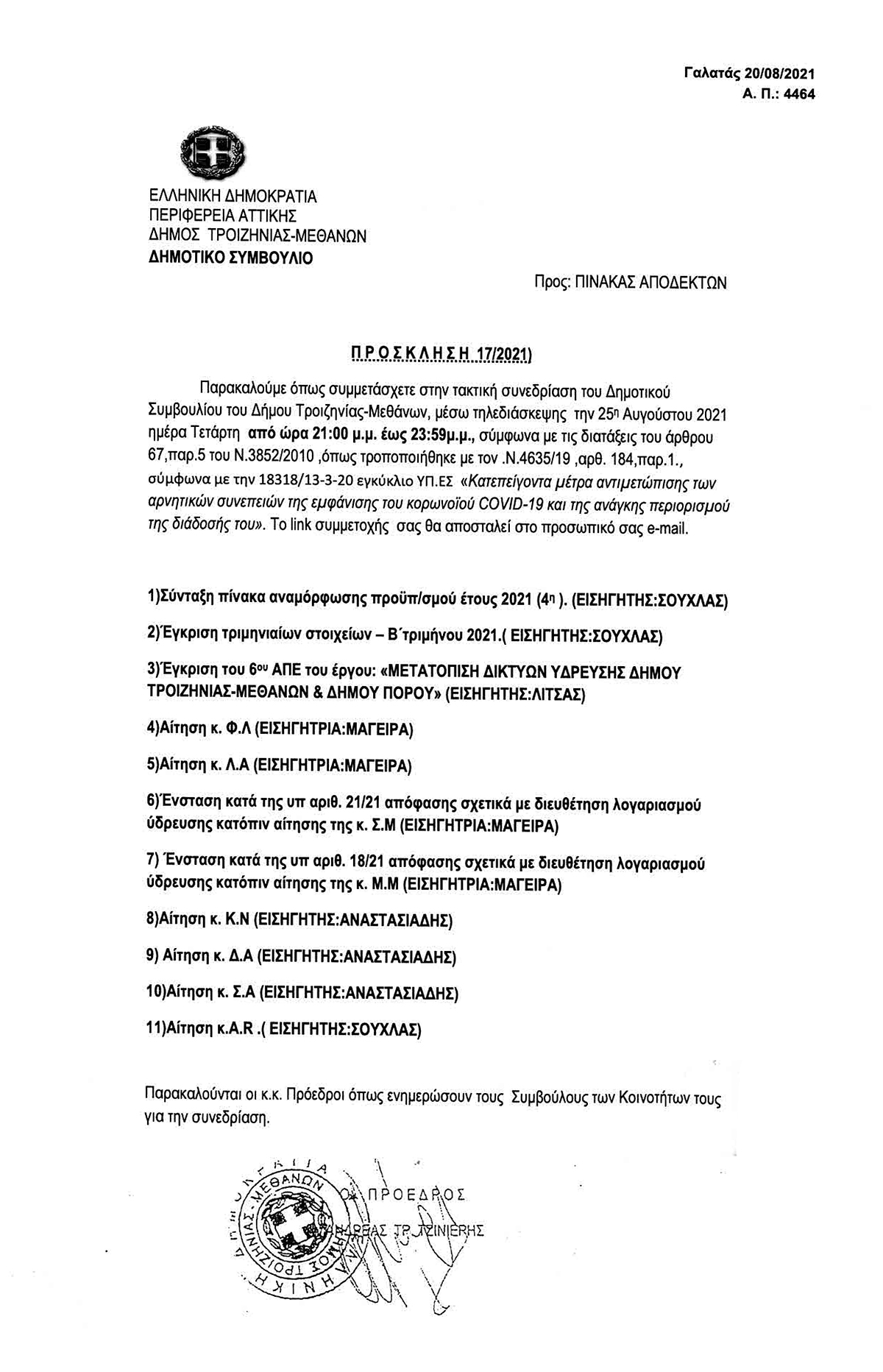 17η Τακτική Συνεδρίαση, Τετάρτη 25 Αυγούστου 2021