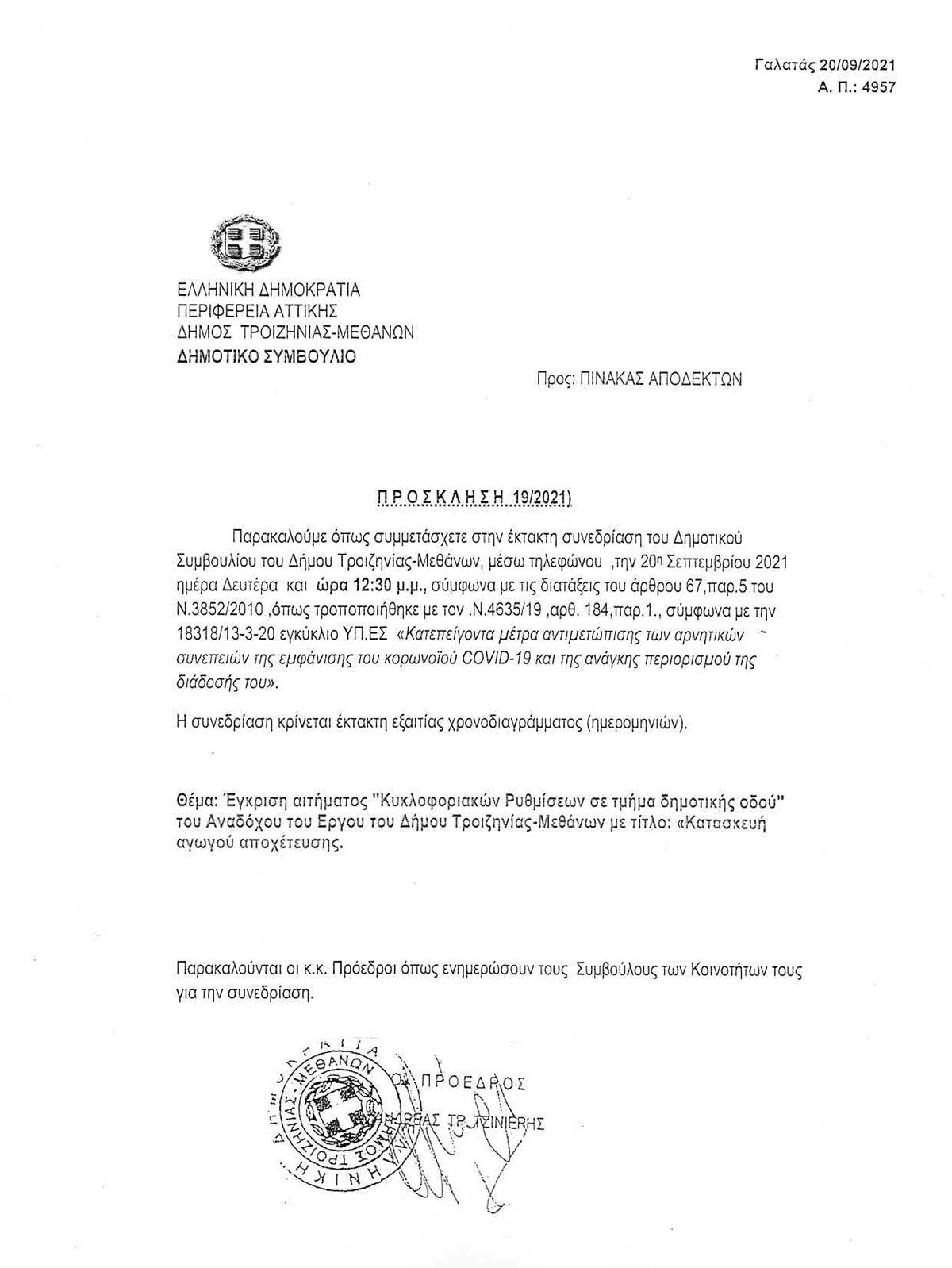 19η Έκτακτη Συνεδρίαση, Δευτέρα 20 Σεπτεμβρίου 2021