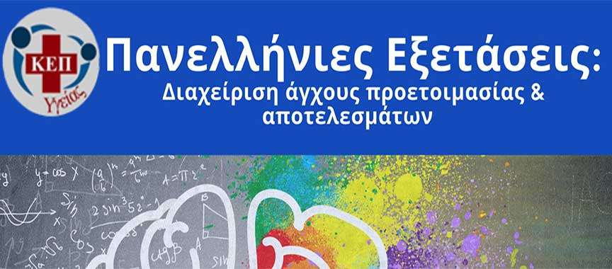 Σας προσκαλούμε στη Διαδικτυακή Δράση με θέμα «Πανελλήνιες Εξετάσεις: Διαχείριση άγχους προετοιμασίας & αποτελεσμάτων», που πραγματοποιείται την Δευτέρα 23 Μαΐου και ώρα 12:00 από το Ελληνικό Διαδημοτικό Δίκτυο Υγιών Πόλεων του ΠΟΥ και τα ΚΕΠ Υγείας.