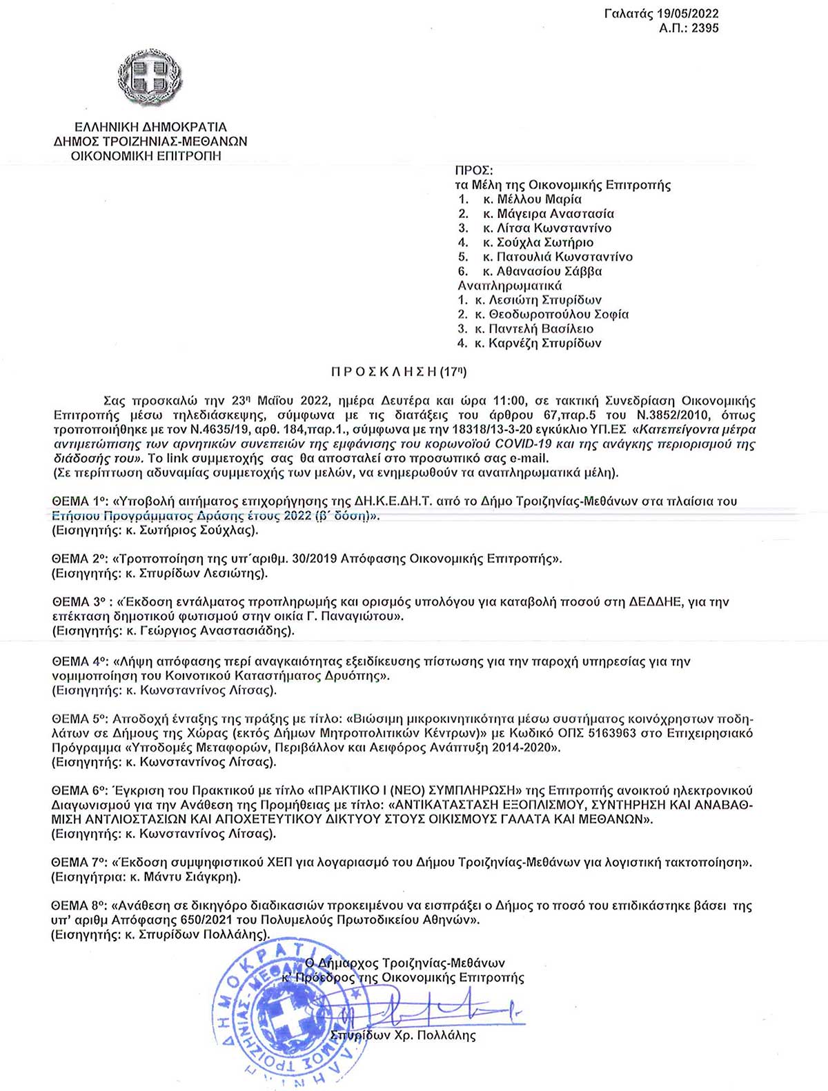 17η Τακτική Δημόσια Συνεδρίαση, Δευτέρα 23 Μαΐου 2022