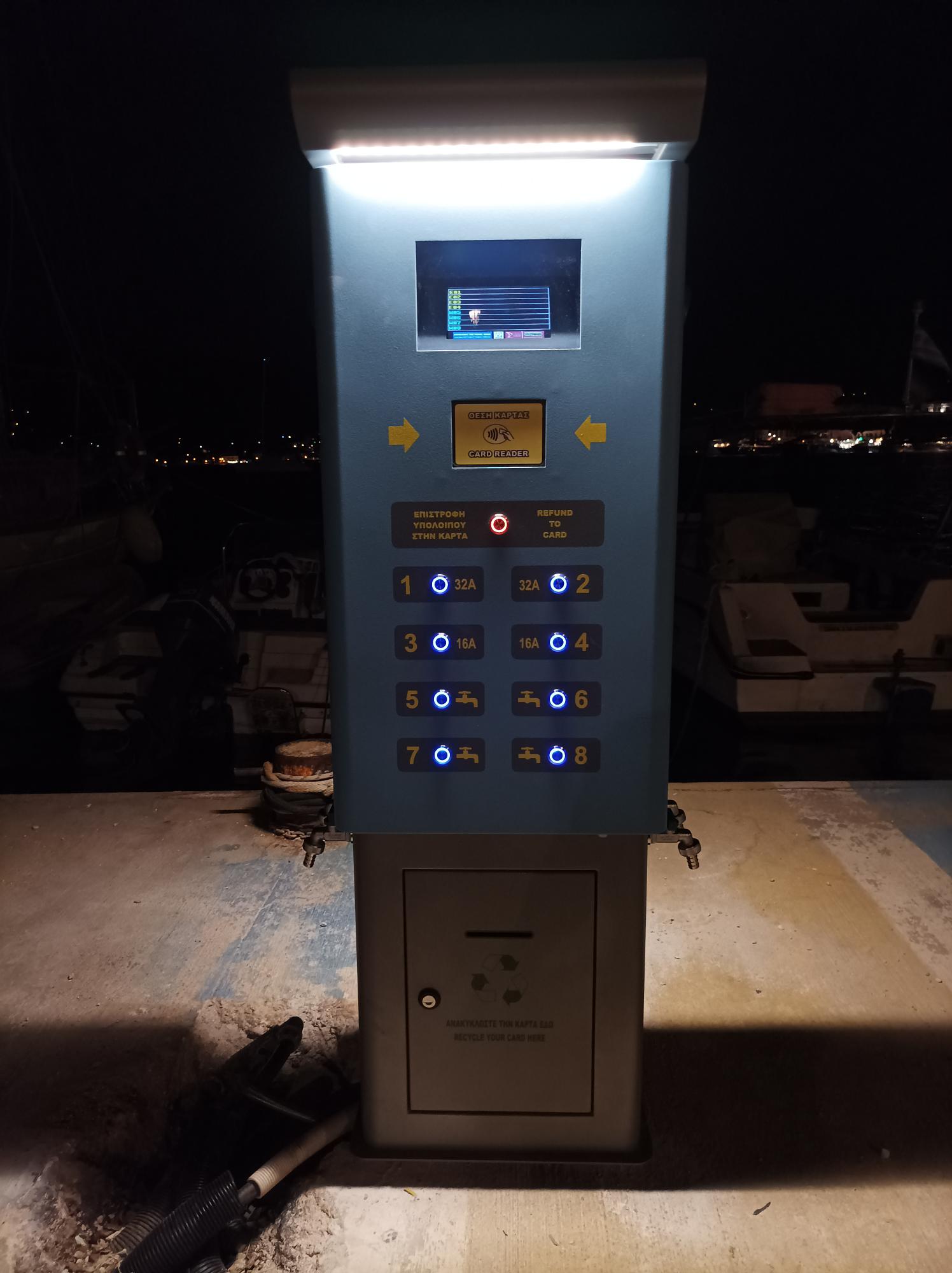 1. 9 PILLARS, όπου το καθένα έχει 2Χ32Amp μονοφασικές παροχές, 2x16Amp μονοφασικές παροχές, 4 παροχές νερού 1/2″, σύστημα προπληρωμής και σύστημα Panoptis