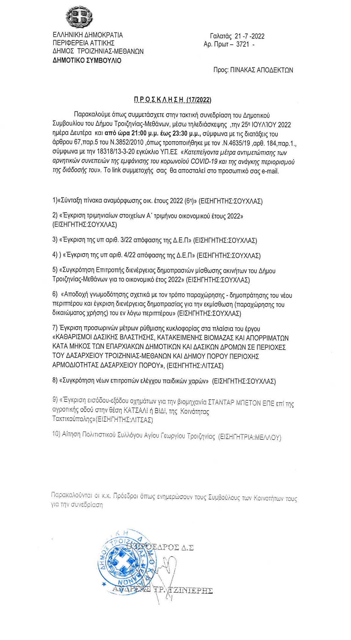17η Τακτική Συνεδρίαση, Δευτέρα 25 Ιουλίου 2022