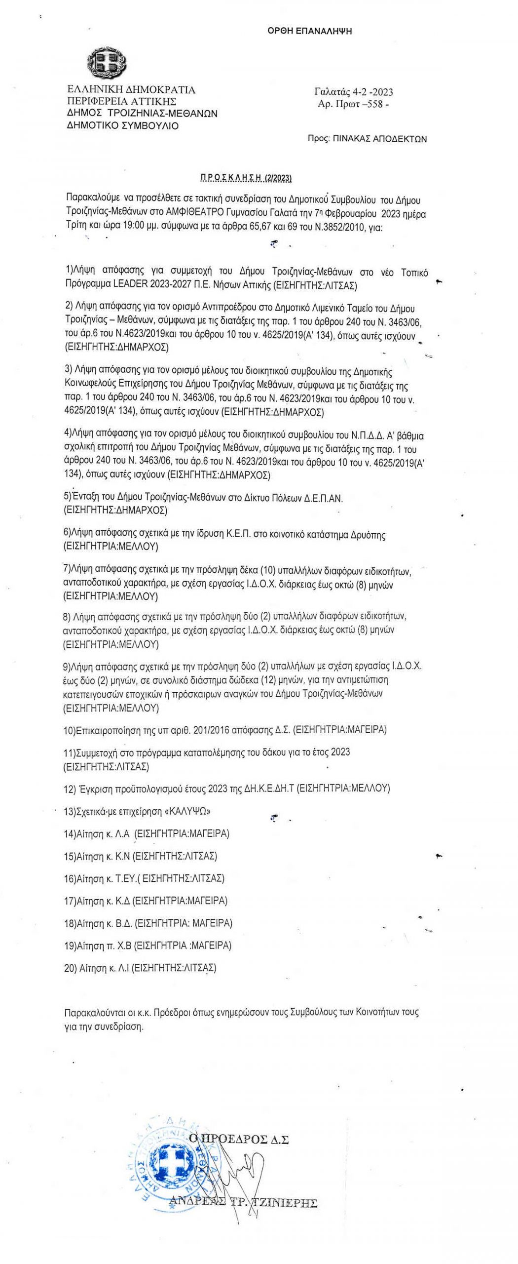 Προσκλήσεις Δημοτικού Συμβουλίου