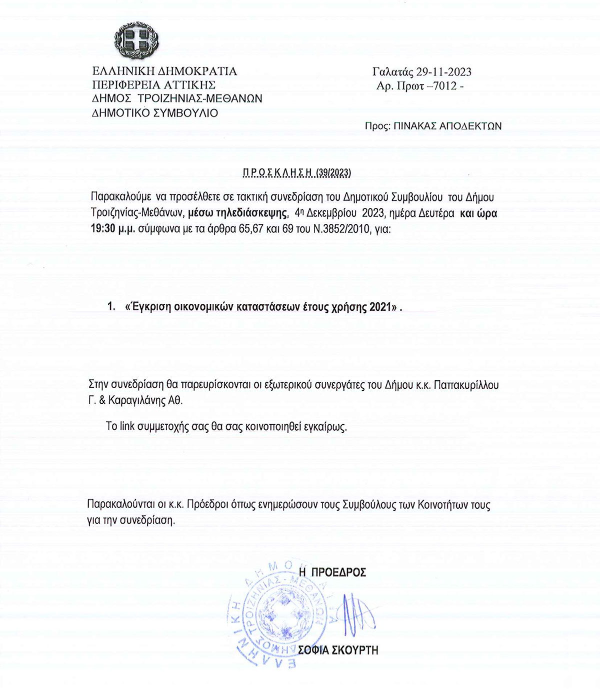 Προσκλήσεις Δημοτικού Συμβουλίου