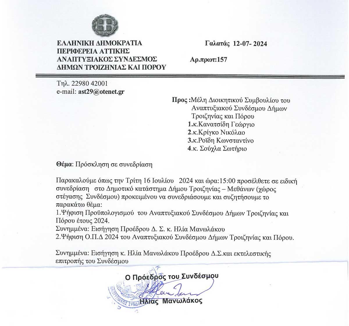 Προσκλήσεις Διοικητικού Συμβουλίου (Α.Σ)