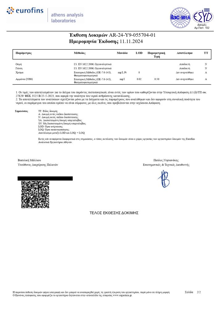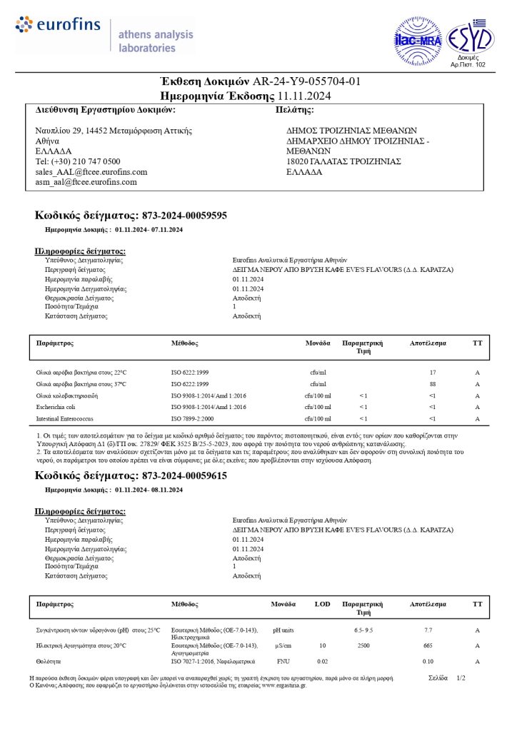Αναλύσεις πόσιμου νερού Κοινότητας Καρατζά
