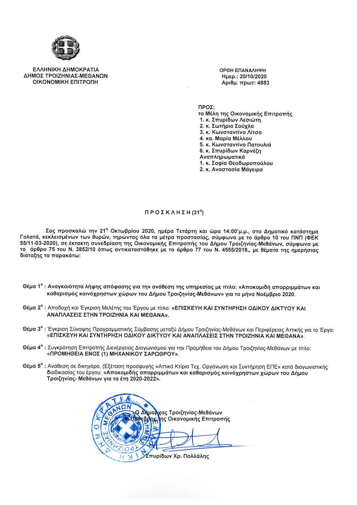 31η Έκτακτη Συνεδρίαση, Τετάρτη 21 Οκτωβρίου 2020