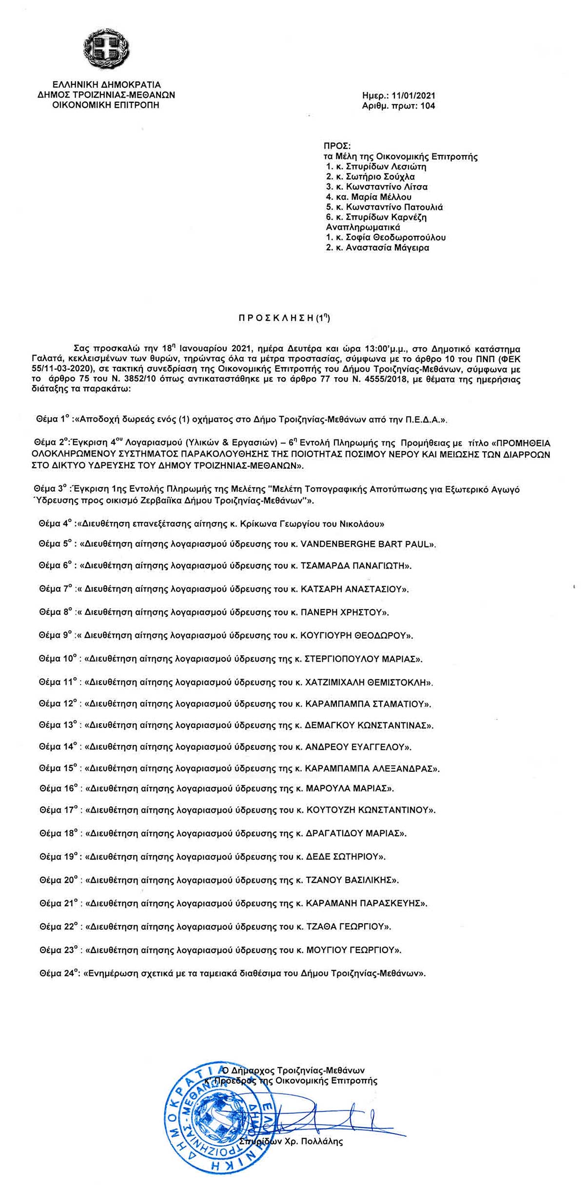 1η Τακτική Συνεδρίαση, Δευτέρα 18 Ιανουαρίου 2021