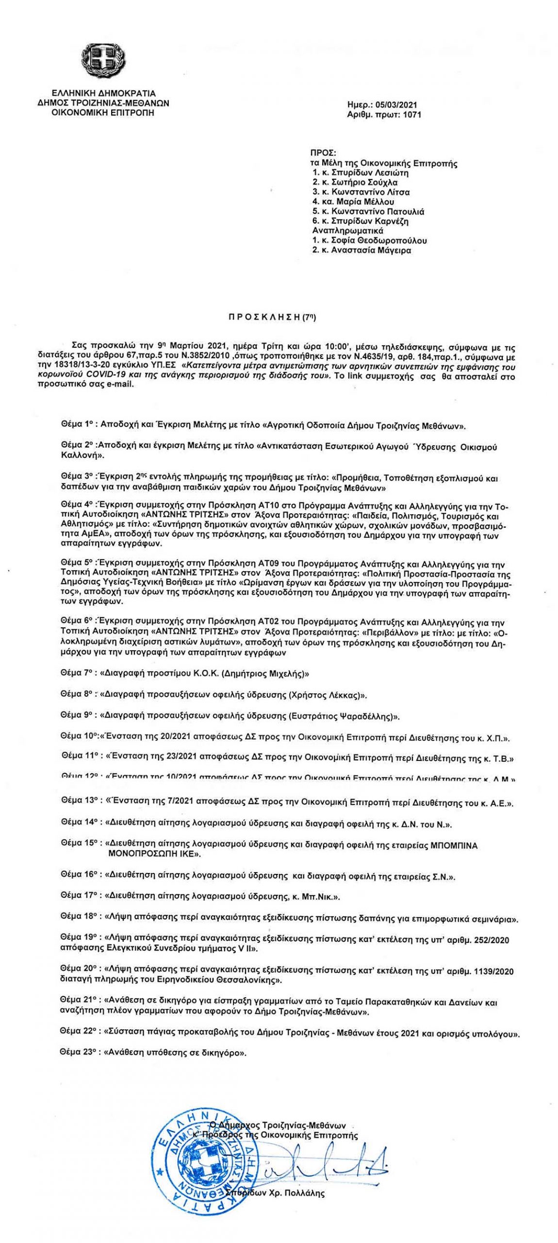 7η Τακτική Συνεδρίαση, Τρίτη 9 Μαρτίου 2021