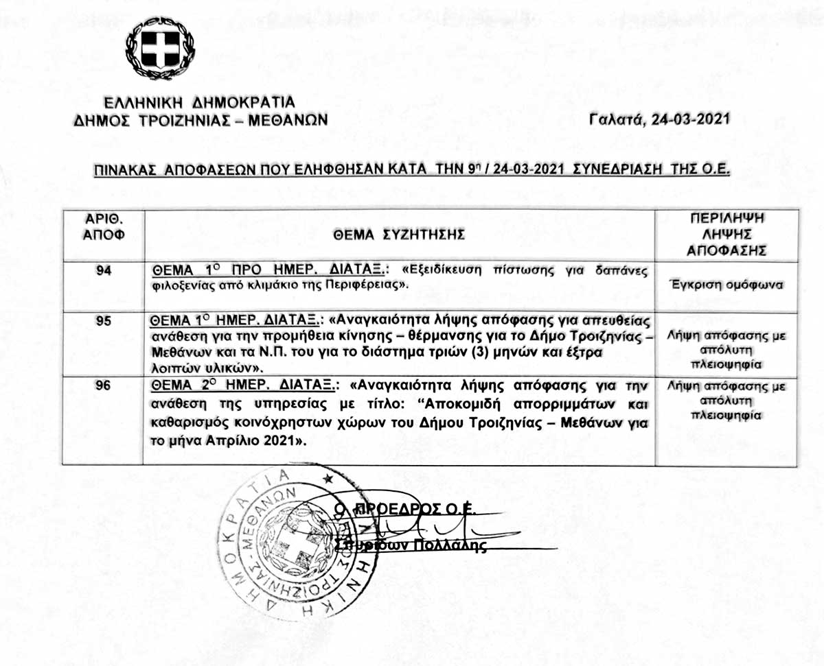 9η Έκτακτη Δημόσια Συνεδρίαση, Τετάρτη 24 Μαρτίου 2021