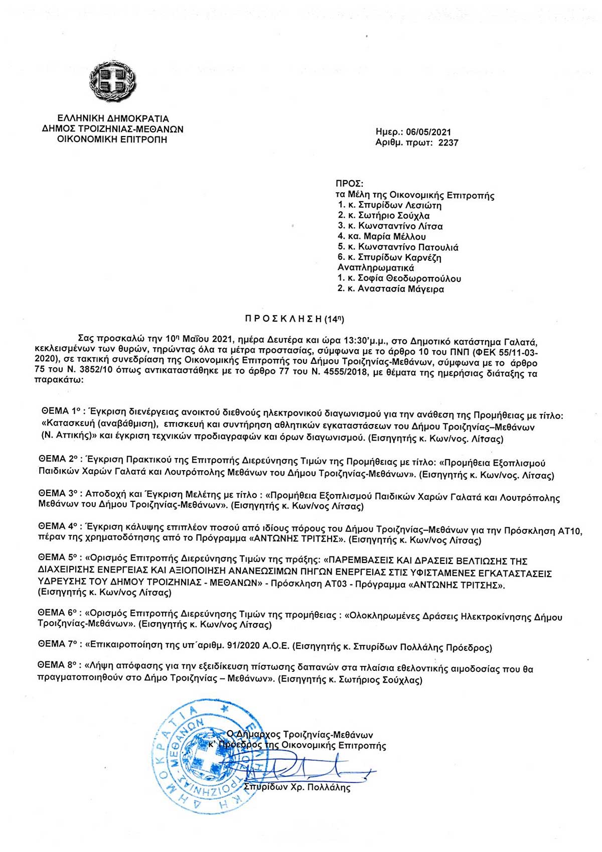 14η Τακτική Συνεδρίαση, Δευτέρα 10 Μαϊου 2021