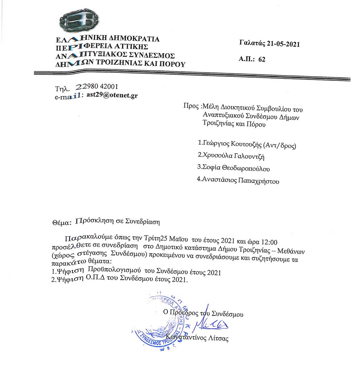 Προσκλήσεις Διοικητικού Συμβουλίου (Α.Σ)