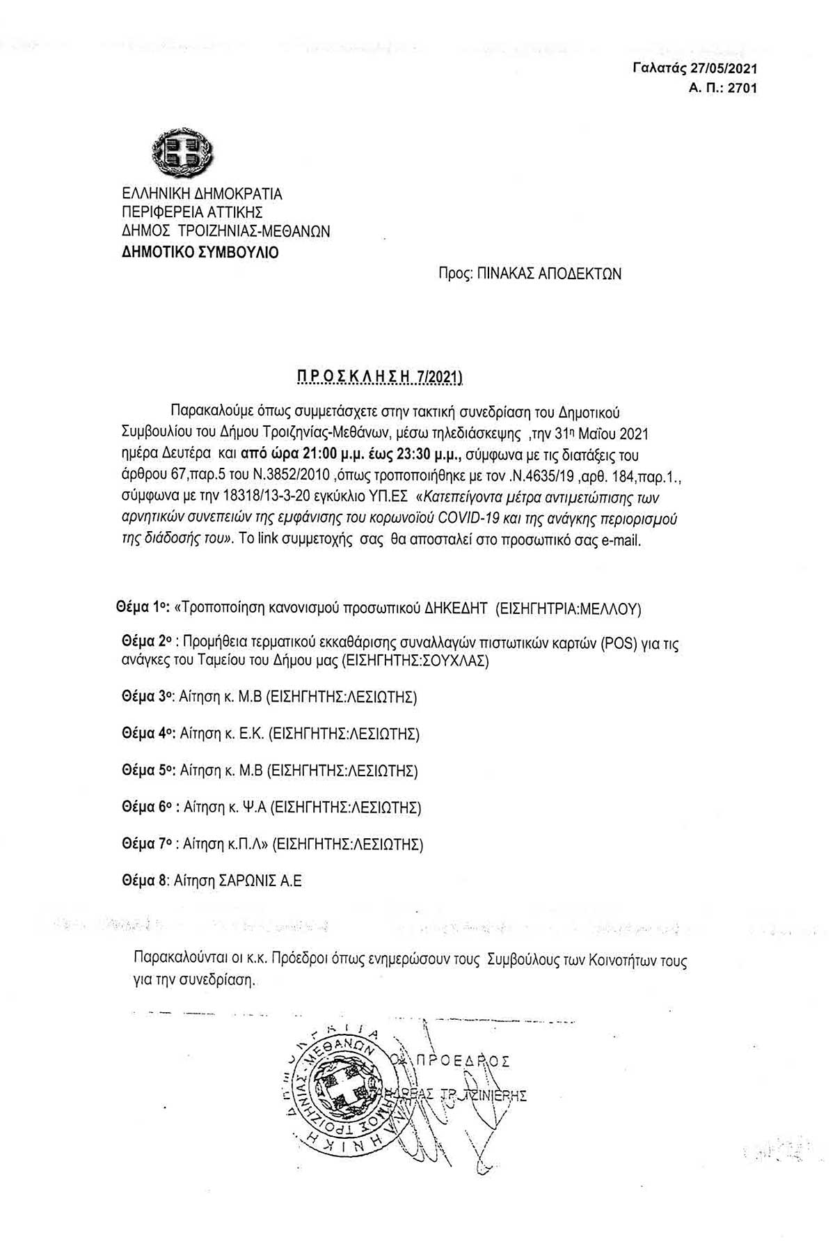 7η Τακτική Συνεδρίαση, Δευτέρα 31 Μαϊου 2021
