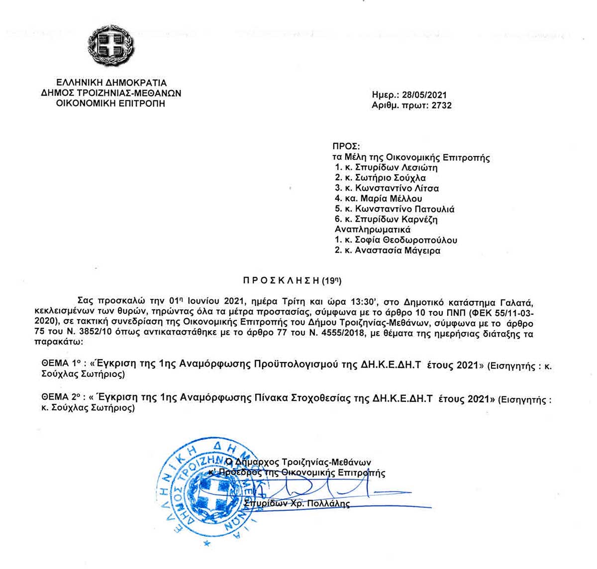 19η Τακτική Συνεδρίαση, Τρίτη 1 Ιουνίου 2021