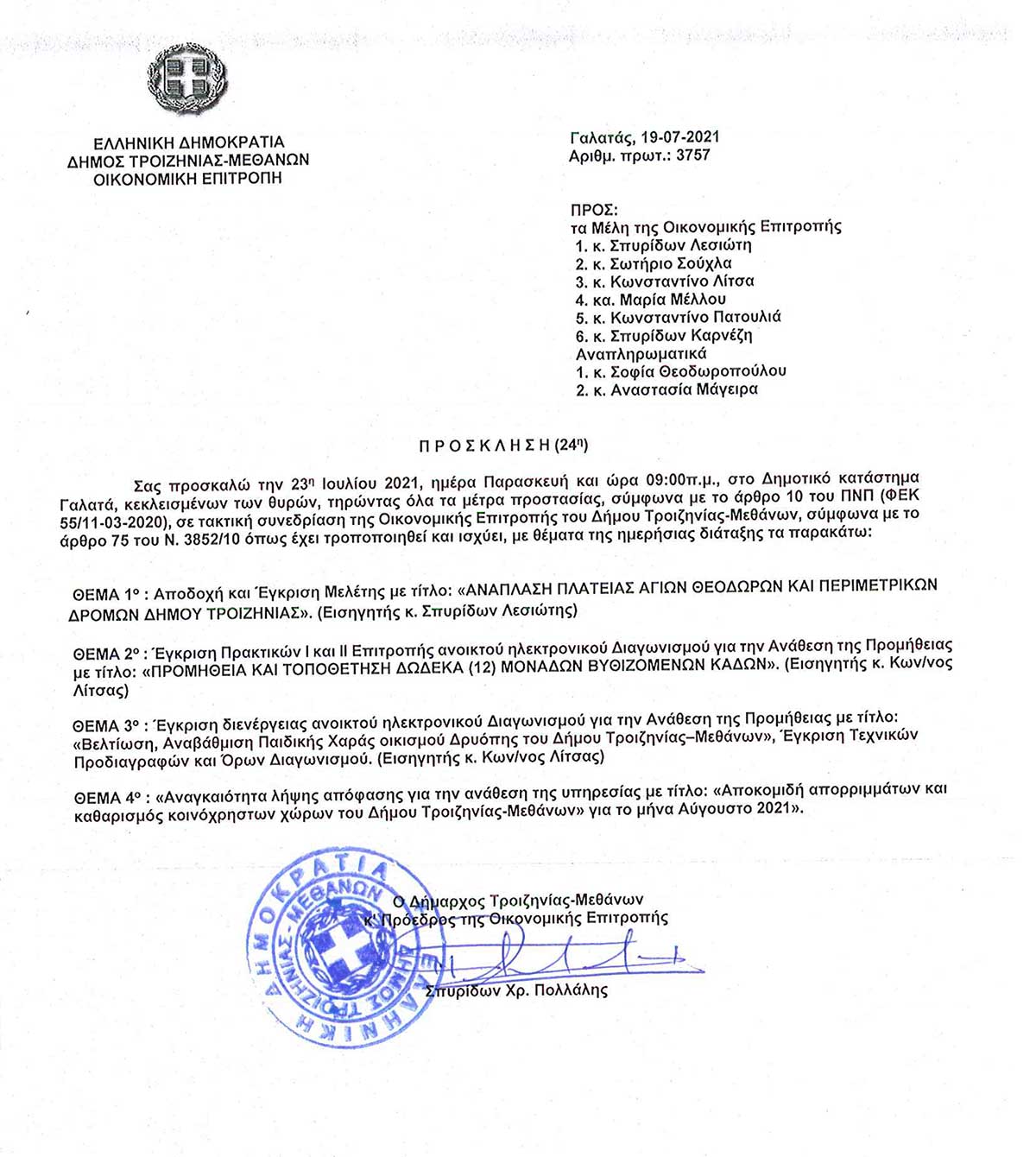 24η Τακτική Συνεδρίαση, Παρασκευή 23 Ιουλίου 2021
