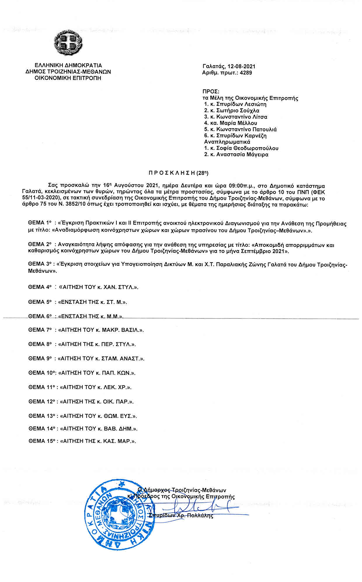 28η Τακτική Συνεδρίαση, Δευτέρα 16 Αυγούστου 2021