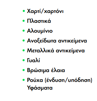 Οι κατηγορίες των υλικών που μπορούν να συλλεχθούν – ανακυκλωθούν στα Κινητά Πράσινα Σημεία είναι οι κάτωθι: