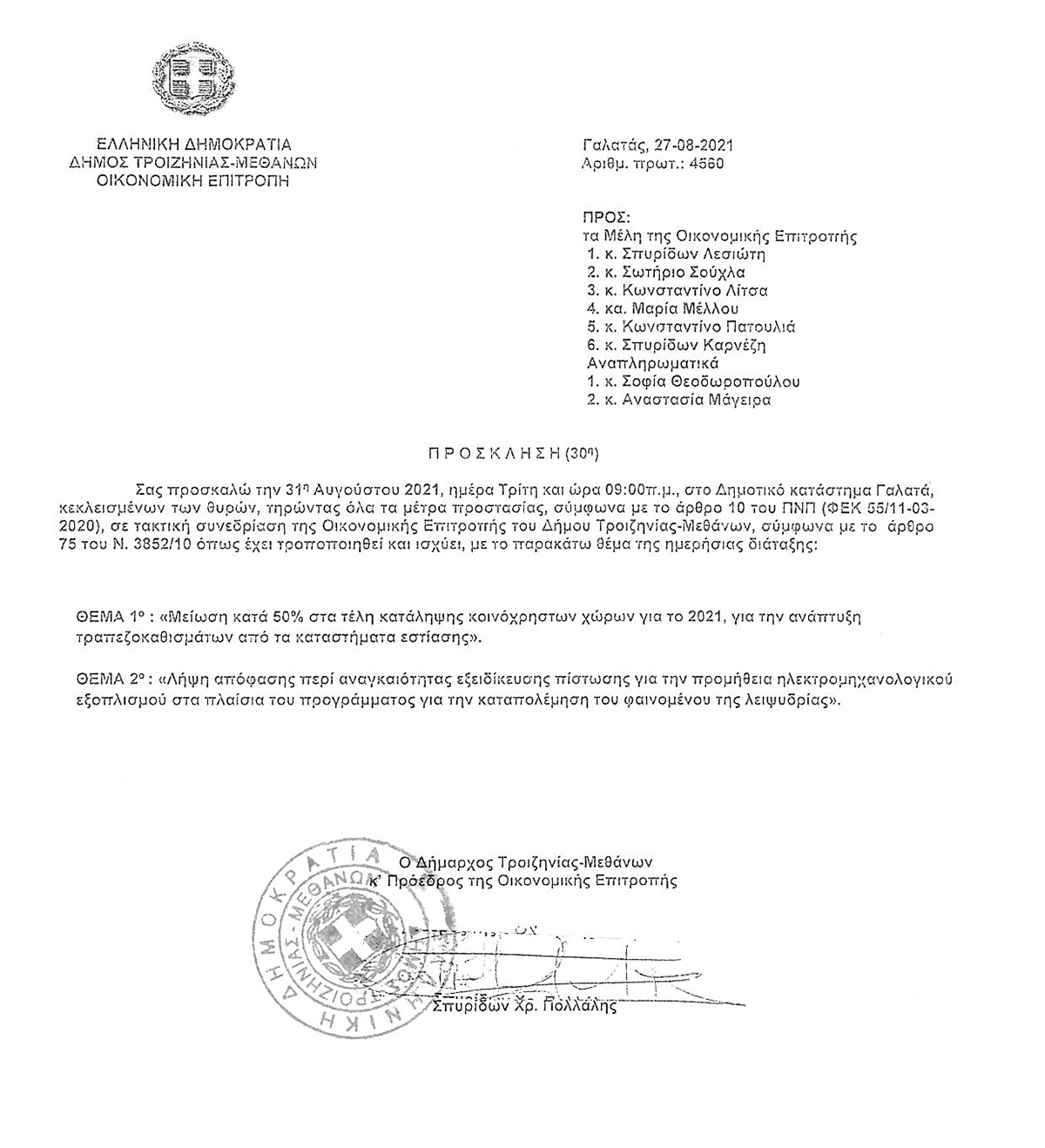 30η Τακτική Συνεδρίαση, Τρίτη 31 Αυγούστου 2021