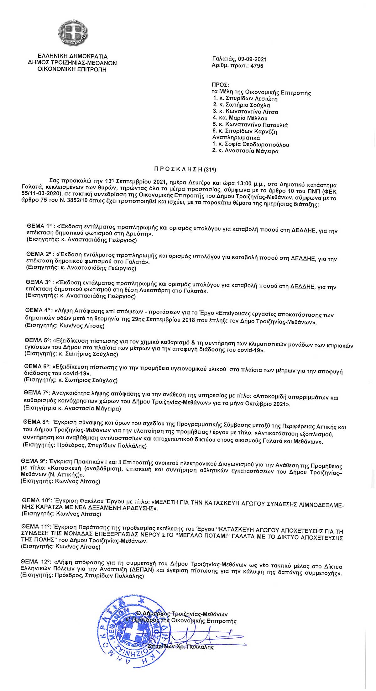 31η Τακτική Δημόσια Συνεδρίαση, Δευτέρα 13 Σεπτεμβρίου 2021