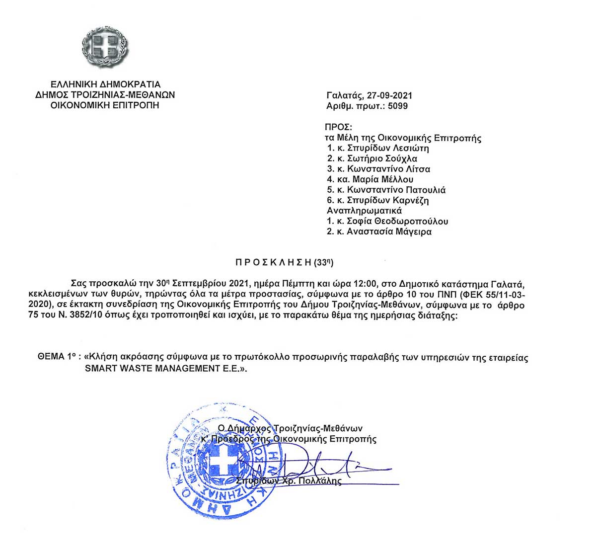 33η Έκτακτη Δημόσια Συνεδρίαση, Πέμπτη 30 Σεπτεμβρίου 2021