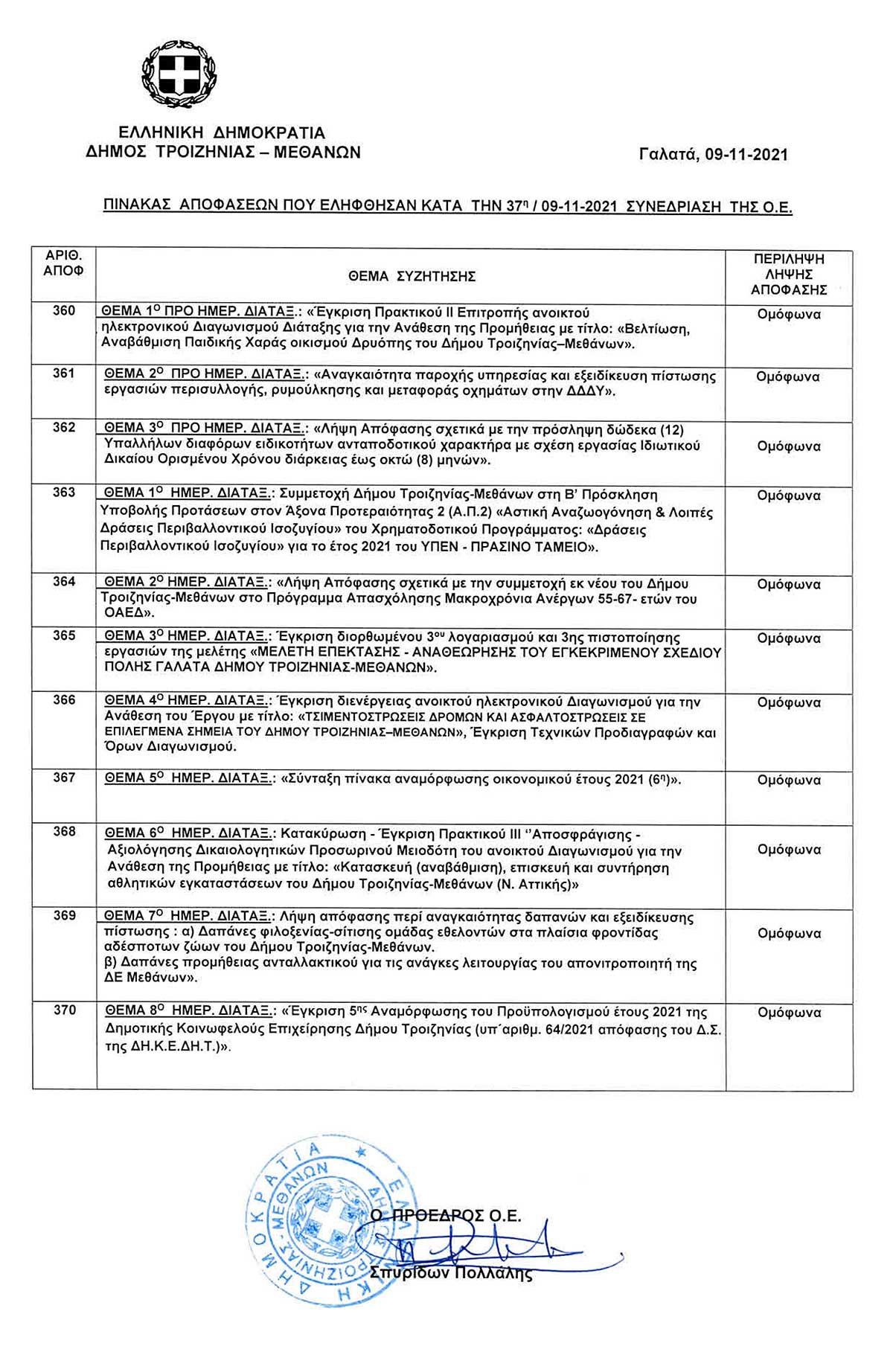 37η Τακτική Δημόσια Συνεδρίαση, Τρίτη 9 Νοεμβρίου 2021