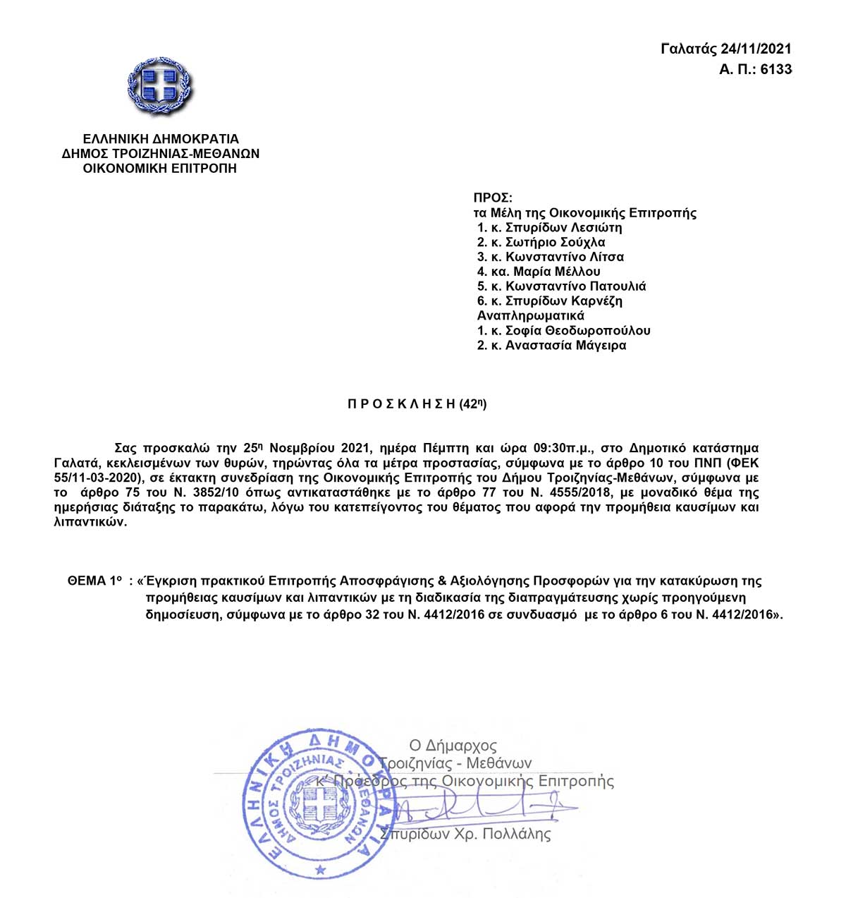 42η Έκτακτη Δημόσια Συνεδρίαση, Πέμπτη 25 Νοεμβρίου 2021