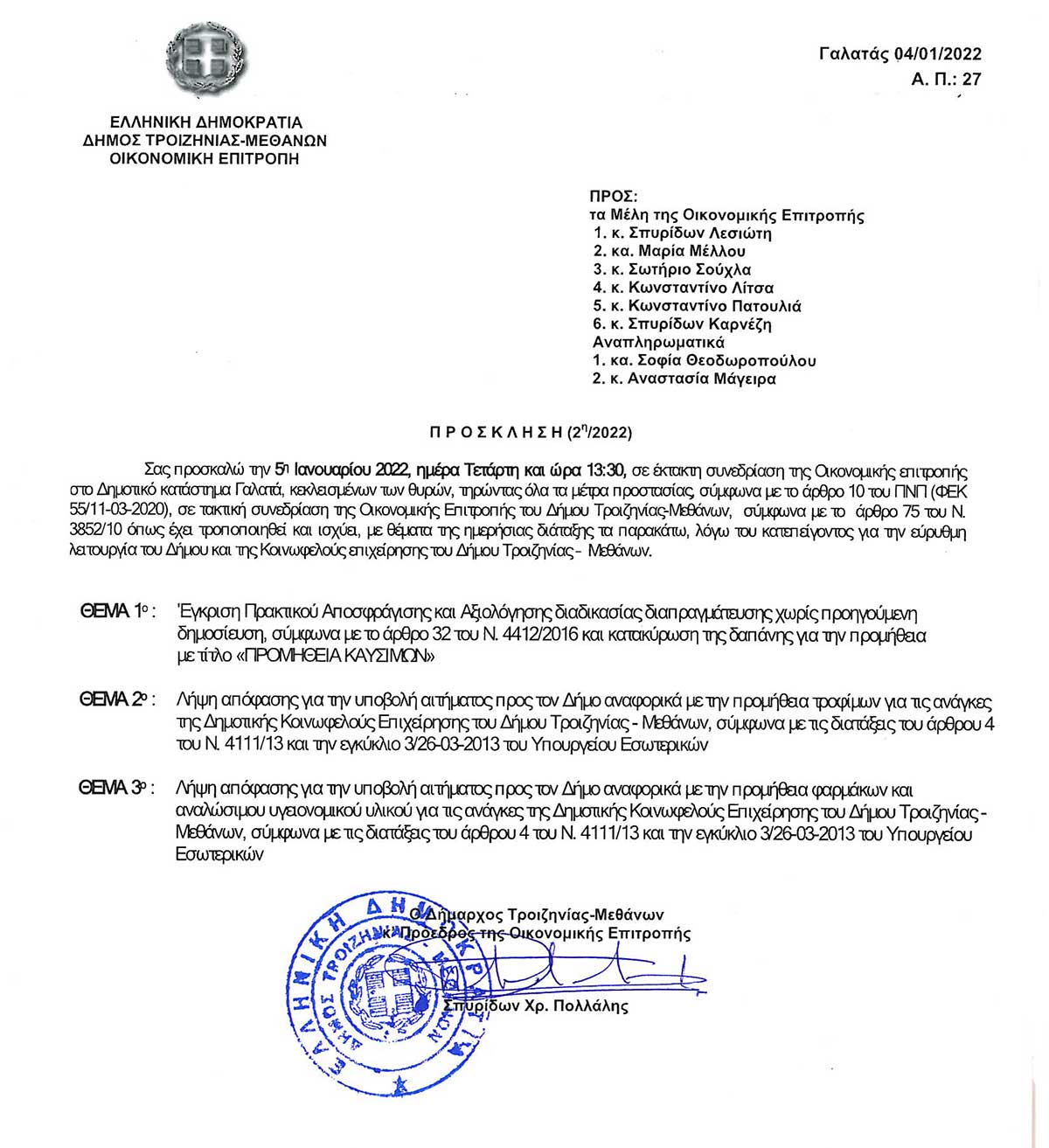 2η Έκτακτη Δημόσια Συνεδρίαση, Τετάρτη 5 Ιανουαρίου 2022