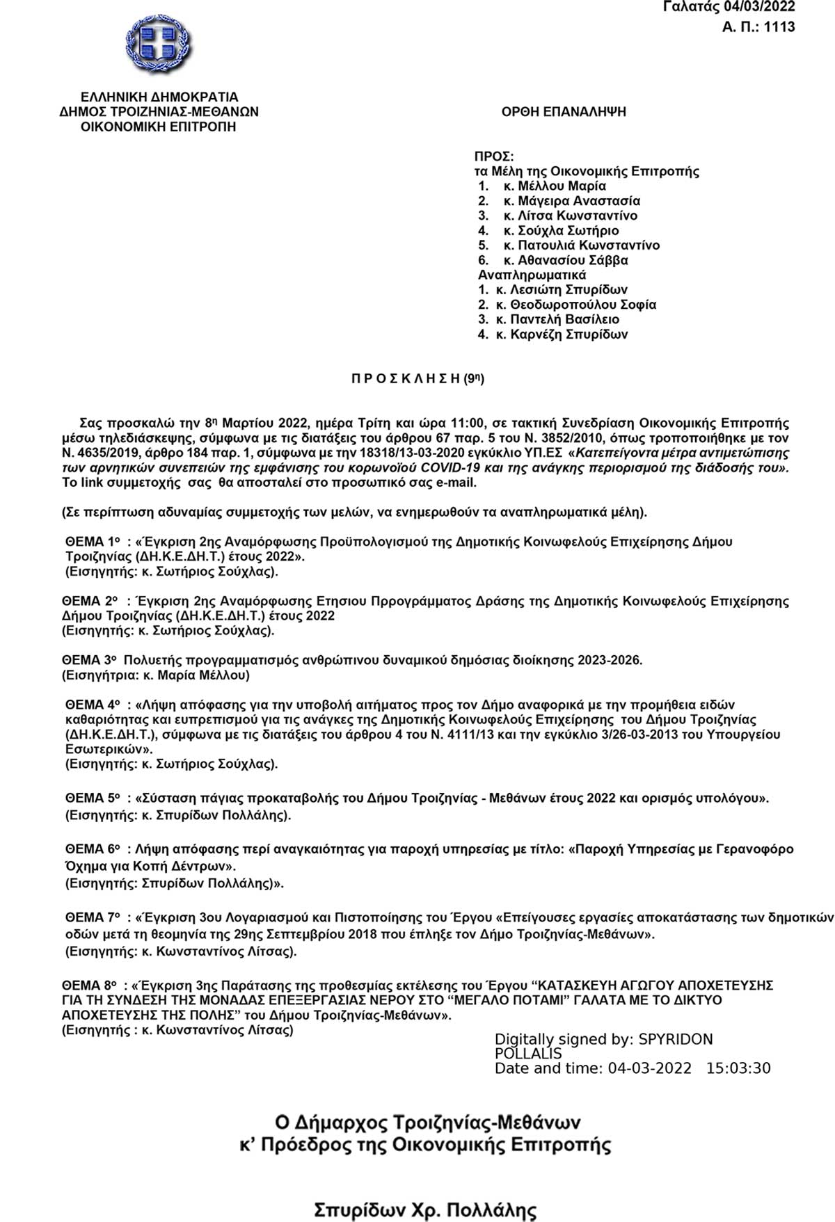 9η Τακτική Δημόσια Συνεδρίαση, Τρίτη 8 Μαρτίου 2022