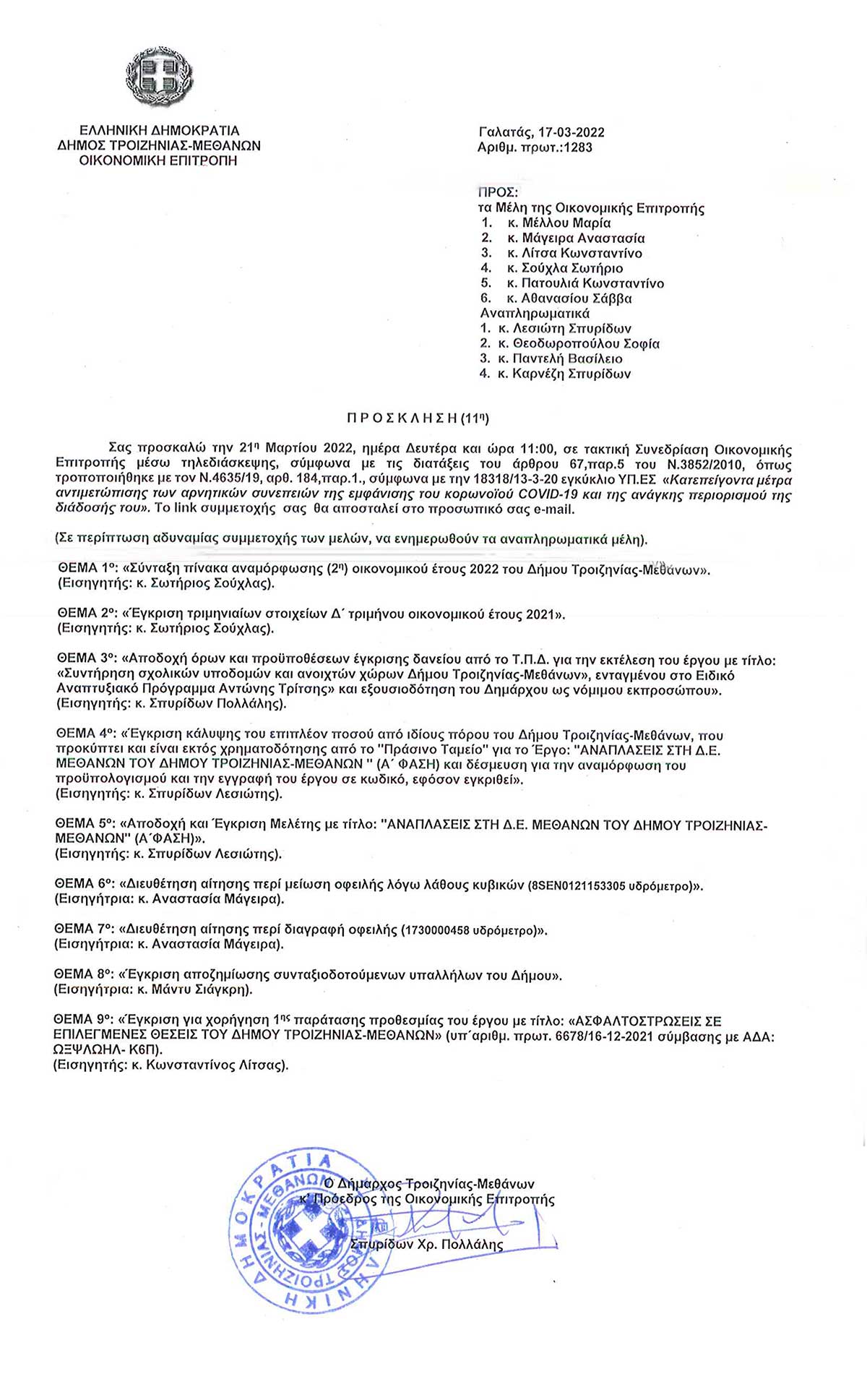10η Τακτική Δημόσια Συνεδρίαση, Παρασκευή 18 Μαρτίου 2022
