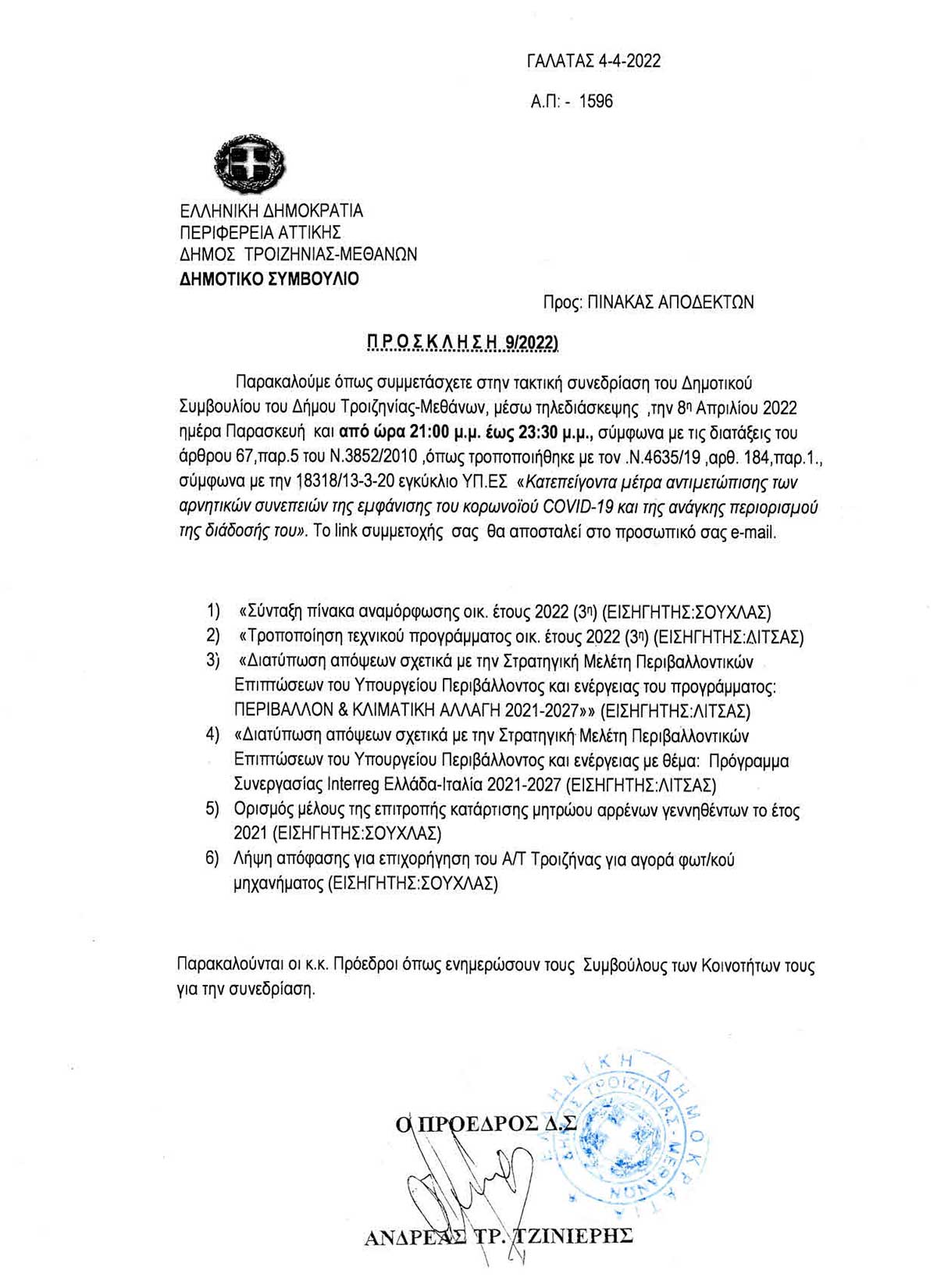 9η Τακτική Συνεδρίαση, Παρασκευή 8 Απριλίου 2022