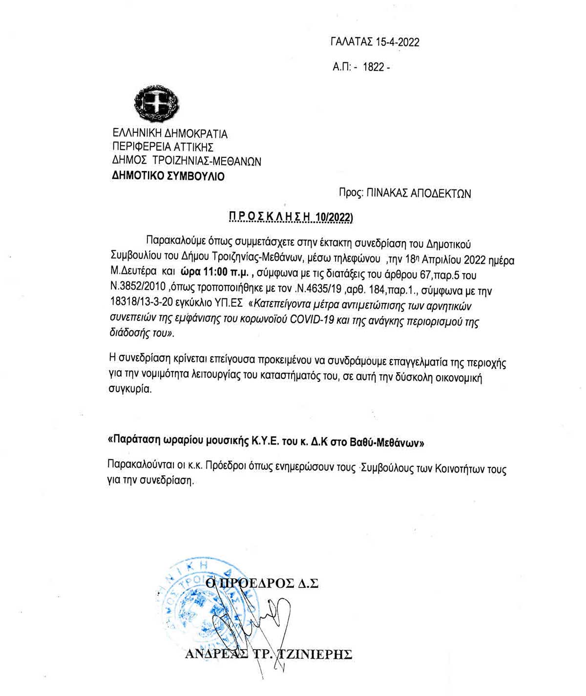 10η Έκτακτη Συνεδρίαση, Μ. Δευτέρα 18 Απριλίου 2022