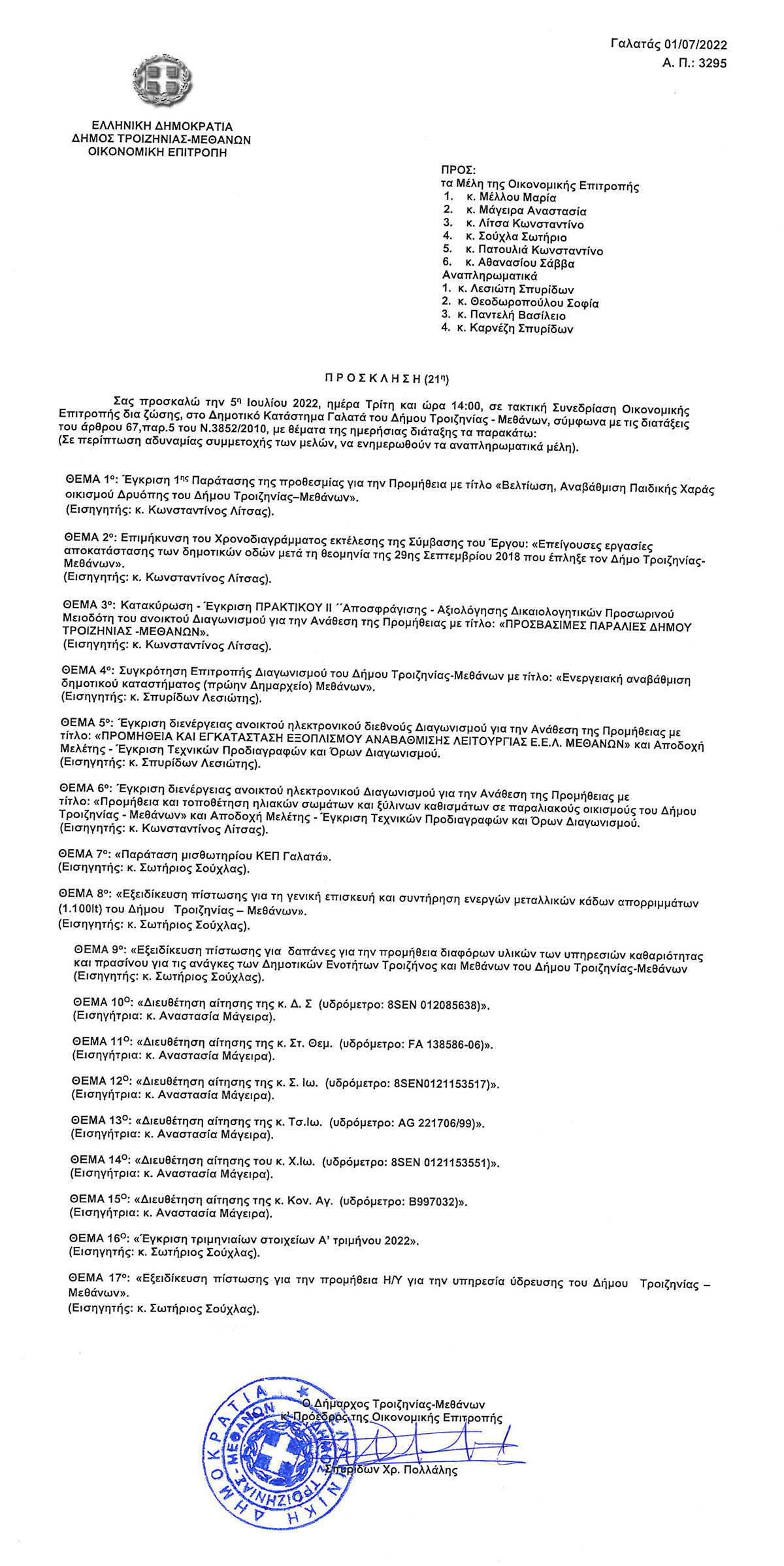 21η Τακτική Δημόσια Συνεδρίαση, Τρίτη 5 Ιουλίου 2022