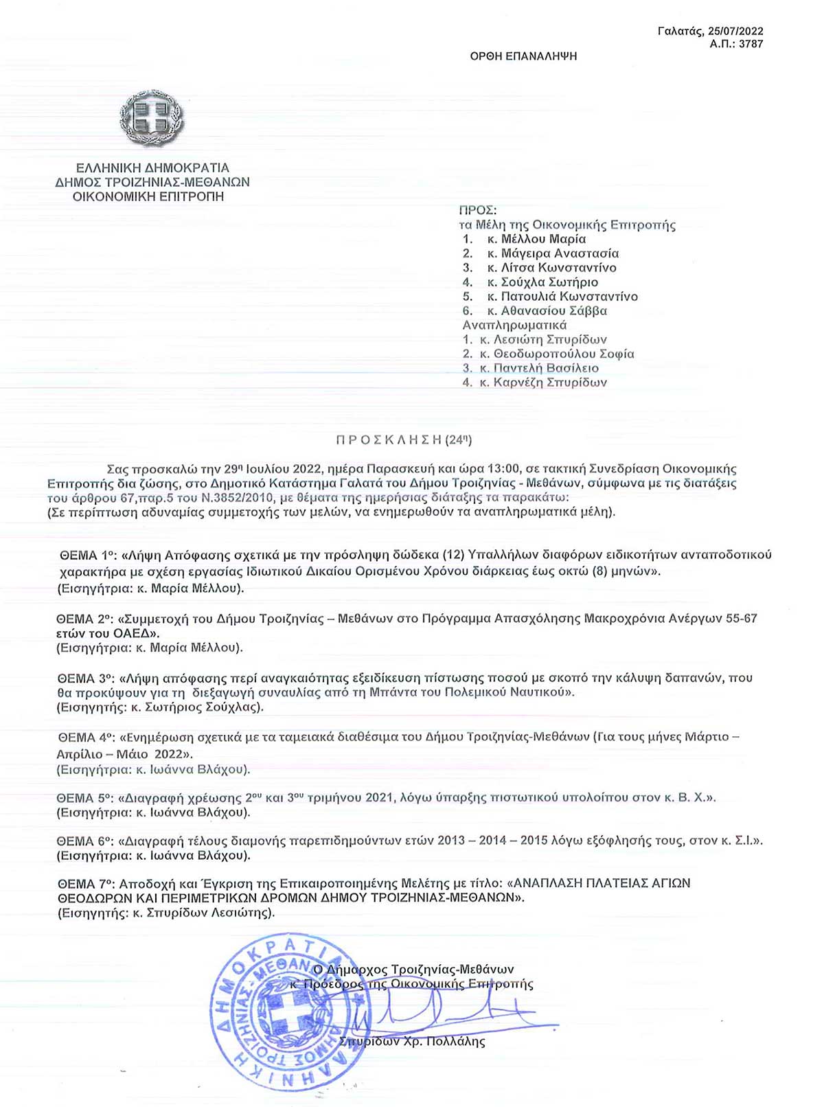 24η Τακτική Δημόσια Συνεδρίαση, Παρασκευή 29 Ιουλίου 2022