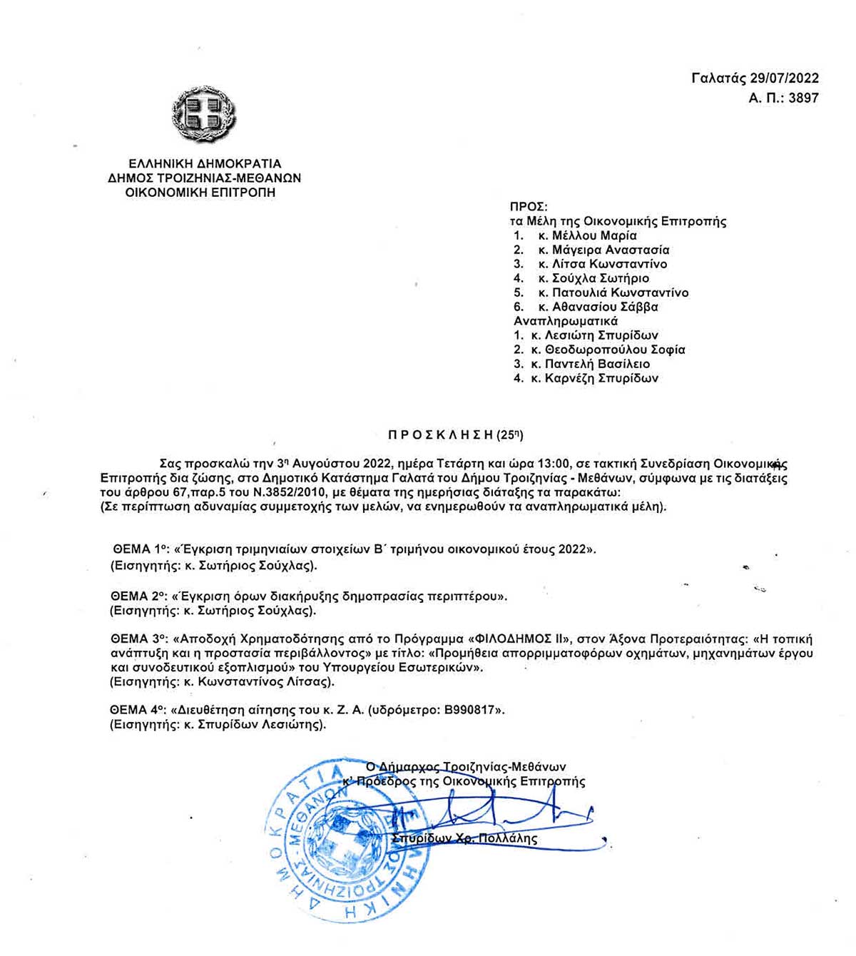 25η Τακτική Συνεδρίαση, Τετάρτη 3 Αυγούστου 2022