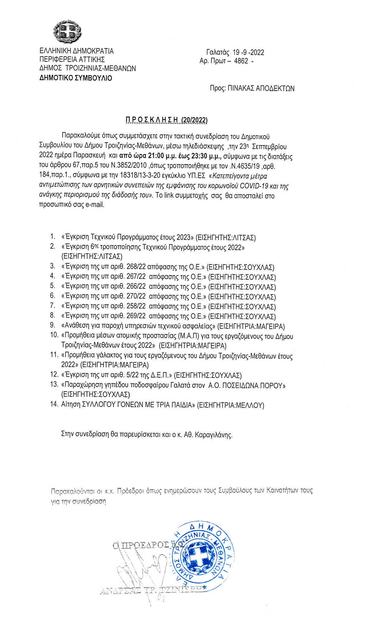 20η Τακτική Συνεδρίαση, Παρασκευή 23 Σεπτεμβρίου 2022