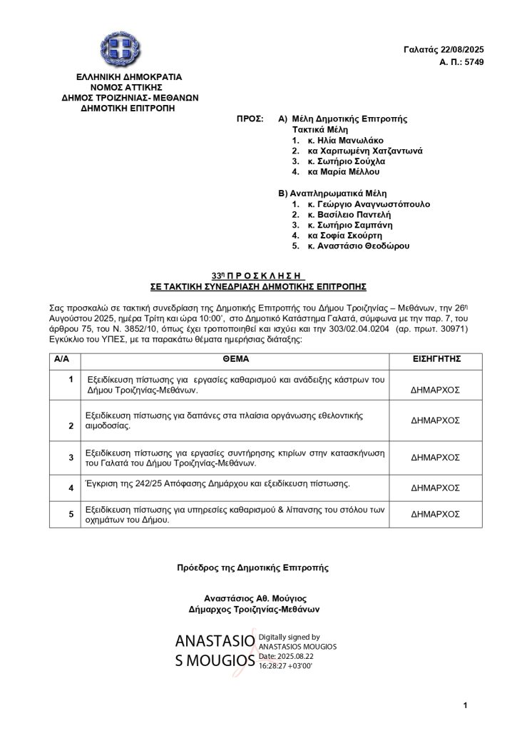 Νέα του Δήμου • Προσκλήσεις Δημοτικής Επιτροπής