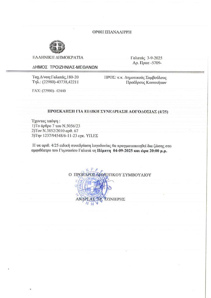 4η Ειδική Συνεδρίαση Λογοδοσίας της Δημοτικής Αρχής – ΟΡΘΗ ΕΠΑΝΑΛΗΨΗ